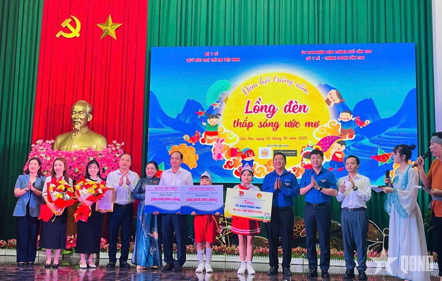 Trước đó, đoàn công tác đã đến thăm và trao hơn 30 phần quà Trung thu (bao gồm 4 triệu đồng tiền mặt cùng một phần quà) tặng các bệnh nhi mắc bệnh hiểm nghèo tại Bệnh viện Ung bướu TP Cần Thơ, gửi gắm tình cảm và sự động viên kịp thời tới các em và gia đình.