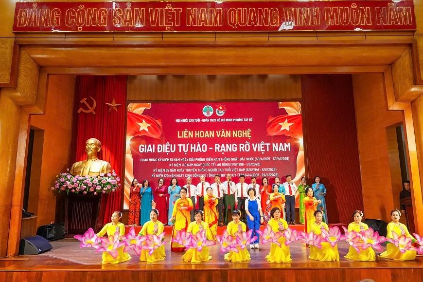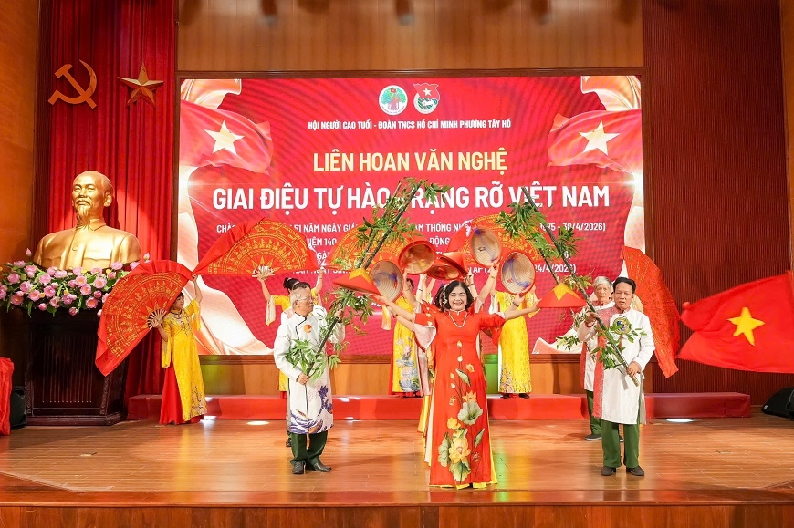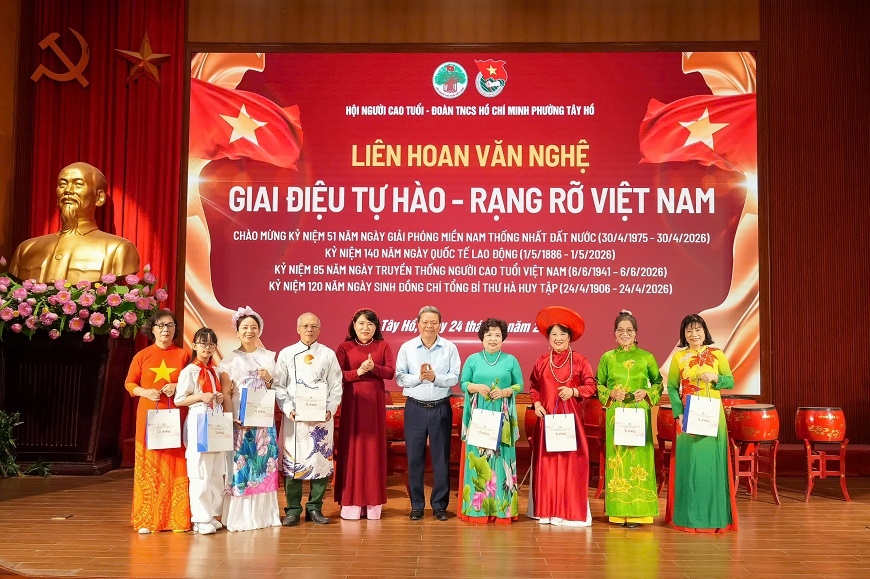 Sáng 24-4, Hội Người cao tuổi phường Tây Hồ phối hợp với Đoàn Thanh niên Cộng sản Hồ Chí Minh phường tổ chức chương trình văn nghệ với chủ đề “Giai điệu tự hào - Rạng rỡ Việt Nam”.