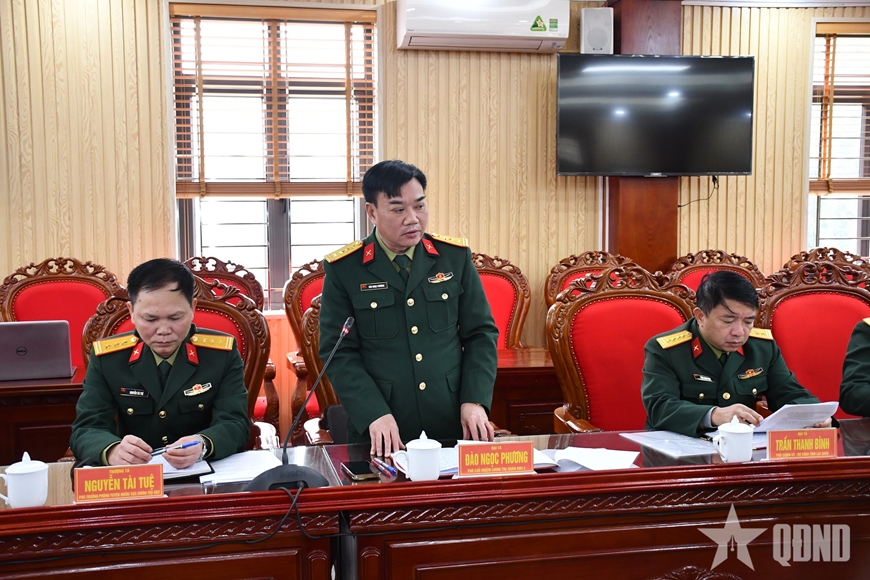 | Đại tá Đào Ngọc Phương, Phó chủ nhiệm Chính trị Quân khu 2 phát biểu tại hội nghị. |