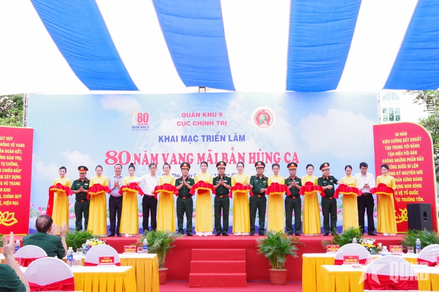 | Nghi thức cắt băng khai mạc Triển lãm chuyên đề 80 năm Ngày thành lập Lực lượng vũ trang Quân khu 9. |