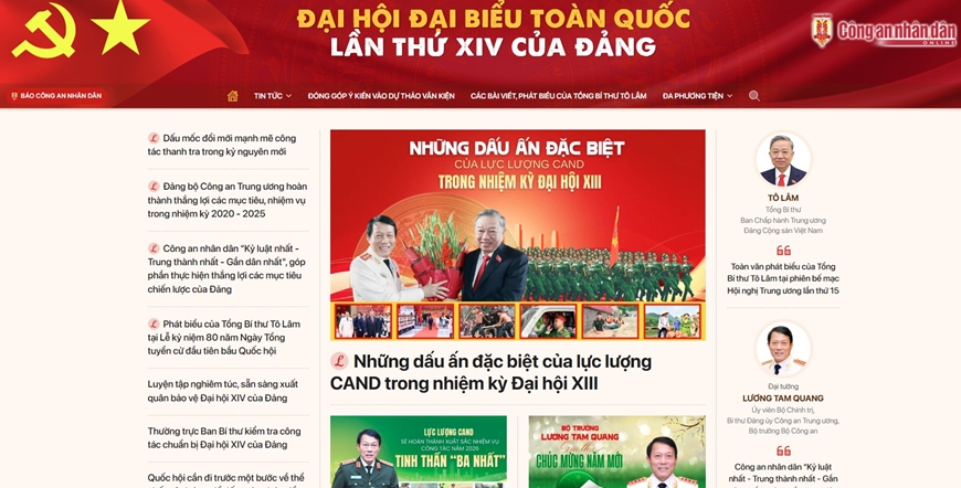 | Giao diện Chuyên trang "Đại hội đại biểu toàn quốc lần thứ XIV của Đảng" trên Báo điện tử CAND. |