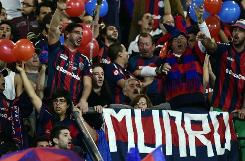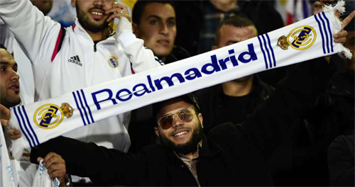 | CĐV Real Madrid (trên) và San Lorenzo (dưới) trên SVĐ Stade de Marrakech ở Ma Rốc để cổ vũ cho hai đội |