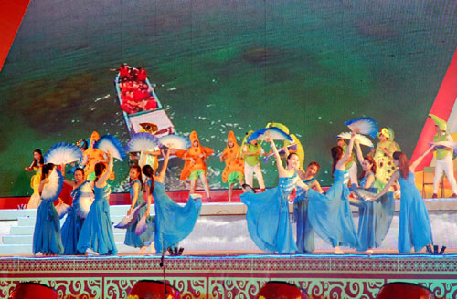 | Tái hiện hội bài chòi trên sân khấu Liên hoan nghệ thuật đường phố. |