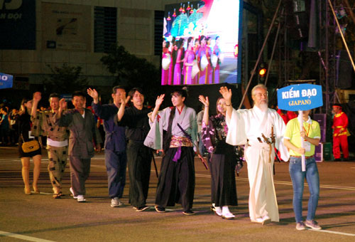 | Các đoàn võ thuật tham gia diễu hành – Trên hình là đoàn kiếm đạo đến từ Nhật Bản. |