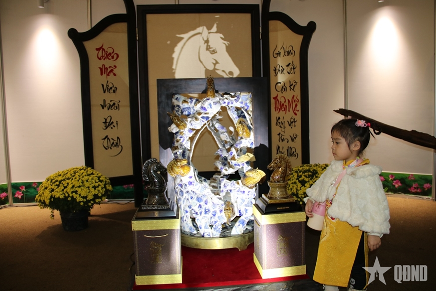 | Các em nhỏ được chiêm ngưỡng tác phẩm về linh vật ngựa của năm Bính Ngọ. |