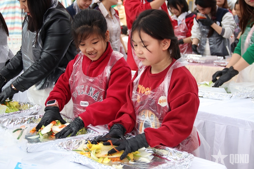 | Thiếu nhi được trải nghiệm làm ẩm thực tại chương trình giao lưu văn hóa Hàn Quốc - Việt Nam. |
