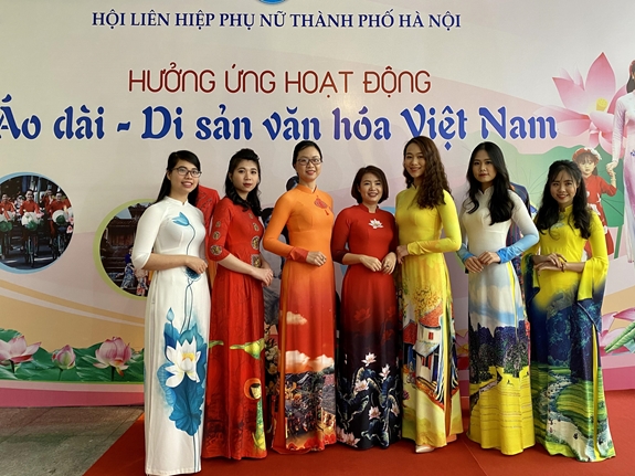 Không gian hưởng ứng “Áo dài-di sản văn hóa Việt Nam” của Hội LHPN TP Hà Nội trong Hội thảo kỷ niệm 55 năm phong trào Phụ nữ “Ba đảm đang”.
