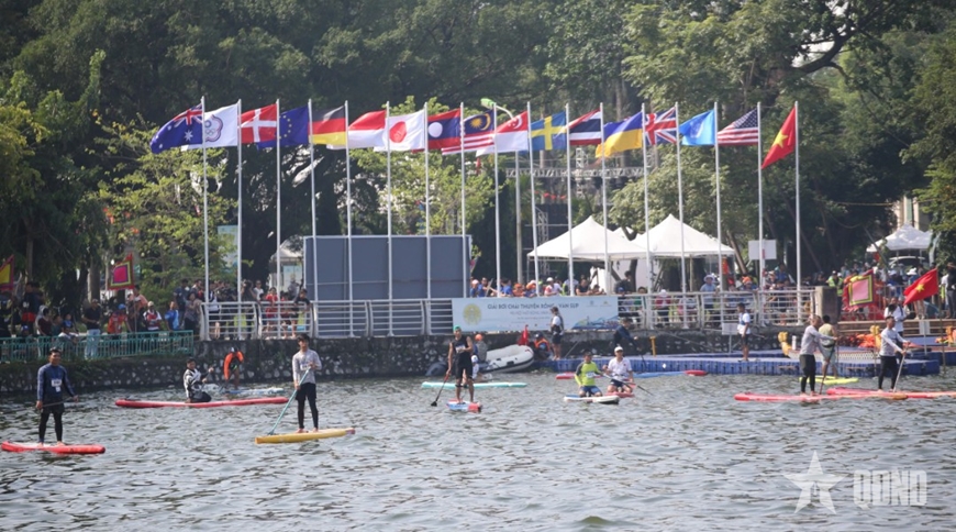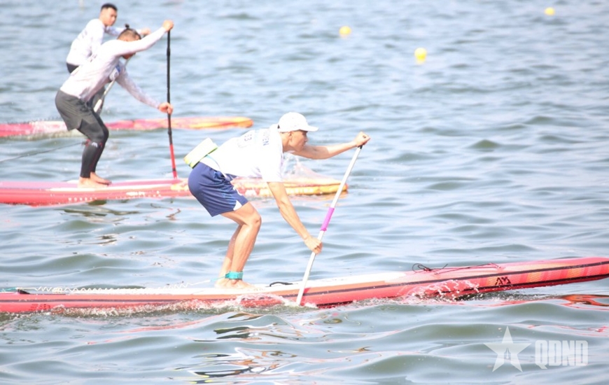 Các vận động viên tranh tài ở nội dung chèo ván SUP. |