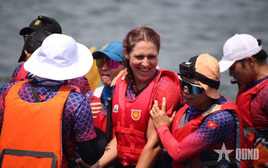 Các đội tham gia thi nội dung bơi chải thuyền rồng. |