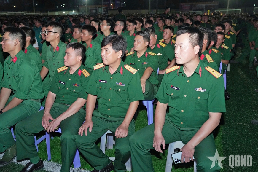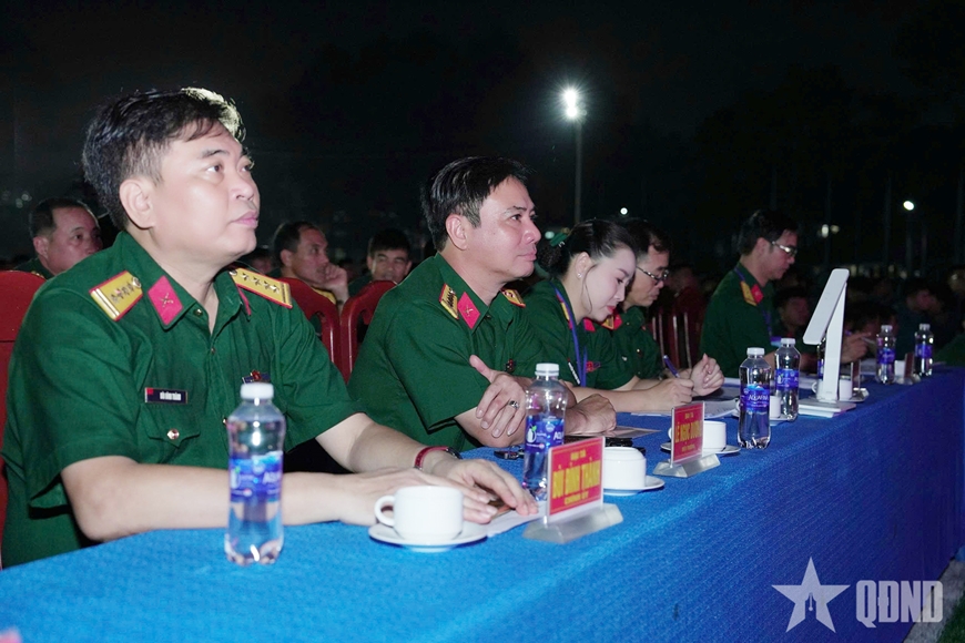 | Thủ trưởng Ban giám hiệu Trường Quân sự Quân khu 7 dự chương trình liên hoan. |