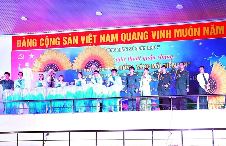 Hơn 20 tiết mục đặc sắc tại liên hoan được dàn dựng công phu, mang đến những giây phút thưởng thức nghệ thuật thú vị, có tính giáo dục truyền thống cao. Các tiết mục văn nghệ tập trung ca ngợi Đảng, Bác Hồ, truyền thống cách mạng, tình yêu quê hương, đất nước, truyền thống Quân khu 7, Trường Quân sự Quân khu 7, ca ngợi nhà giáo, tình thầy trò, nhiệm vụ xây dựng và bảo vệ Tổ quốc, xây dựng nền quốc phòng toàn dân, tình đoàn kết quân dân…