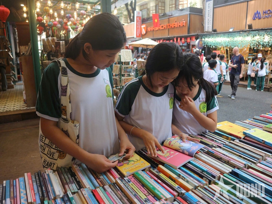 Học sinh TP Hồ Chí Minh tìm hiểu các tác phẩm văn học tại một hội chợ sách.