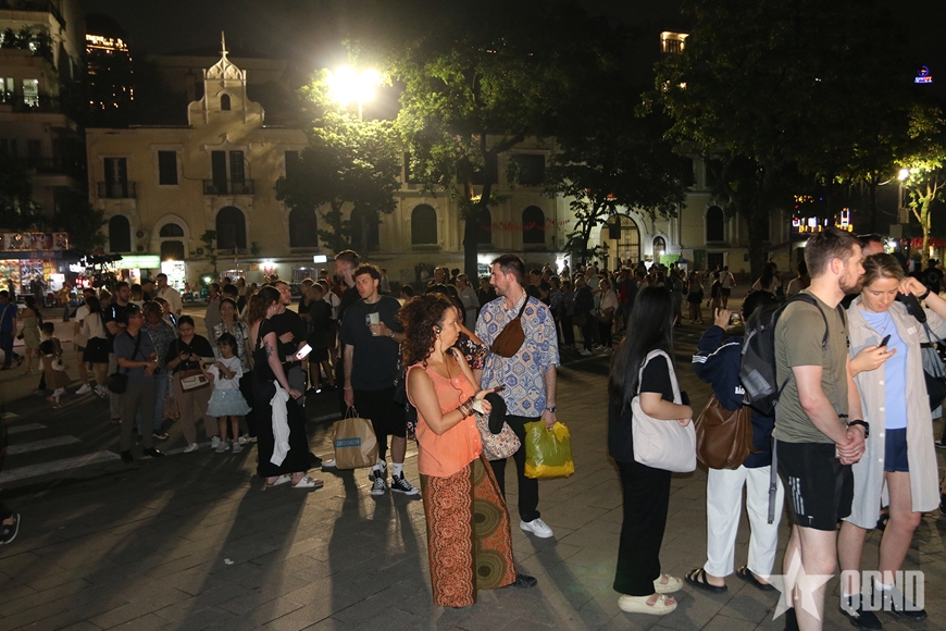 | Đông đảo du khách trong nước và quốc tế trải nghiệm tour đêm "Ngọc Sơn - đêm huyền bí". |