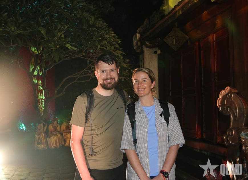 | Du khách quốc tế thích thú với tour đêm tại đền Ngọc Sơn. |
