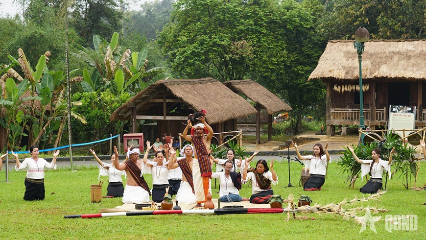 Tại Khu các làng dân tộc III, làng dân tộc Chu Ru, nghi lễ được tái hiện chặt chẽ, trang nghiêm theo phong tục truyền thống.