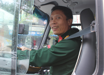 | Lái xe Trần Trung Thành phụ trách chở đoàn phóng viên đưa tin về cuộc đua. |
