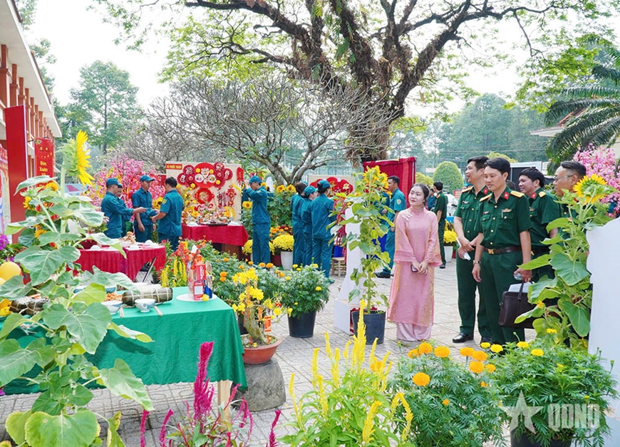 Mâm ngũ quả được sắp đặt hài hòa, rực rỡ sắc màu; câu đối đỏ, cờ Tổ quốc, ảnh Bác Hồ được bài trí trang nghiêm… tất cả hòa quyện thành bức tranh xuân sinh động, thể hiện bản sắc văn hóa từng địa phương và tinh thần sáng tạo của cán bộ, chiến sĩ lực lượng vũ trang.