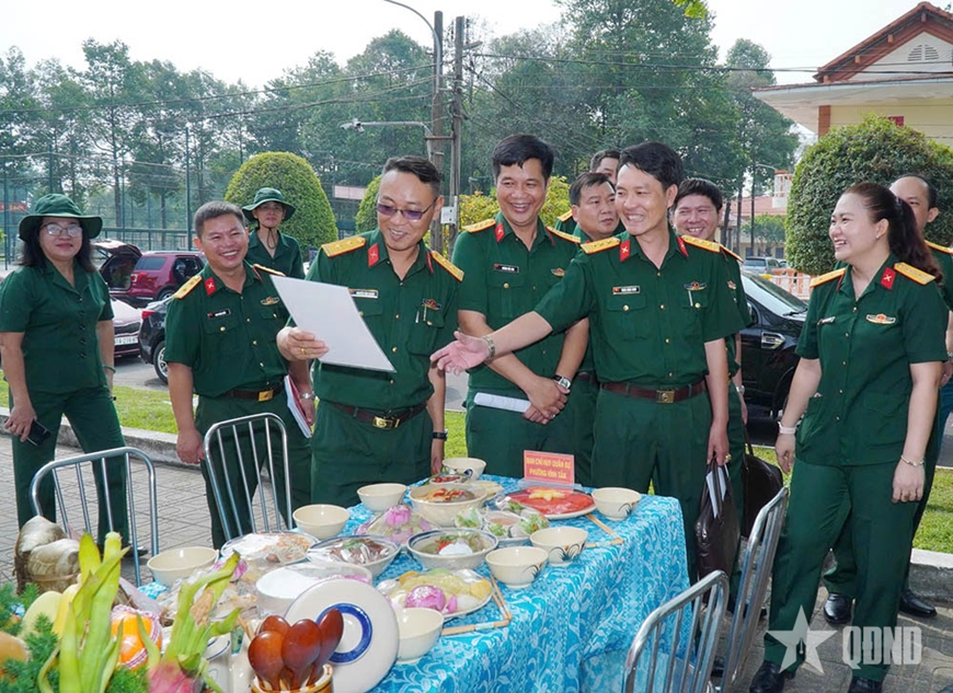 Hương thơm của nếp mới, bánh chưng, bánh tét vừa chín tới lan tỏa trong không gian, hòa cùng tiếng cười nói rộn ràng của cán bộ, chiến sĩ, tạo nên bức tranh xuân ấm áp, nghĩa tình.