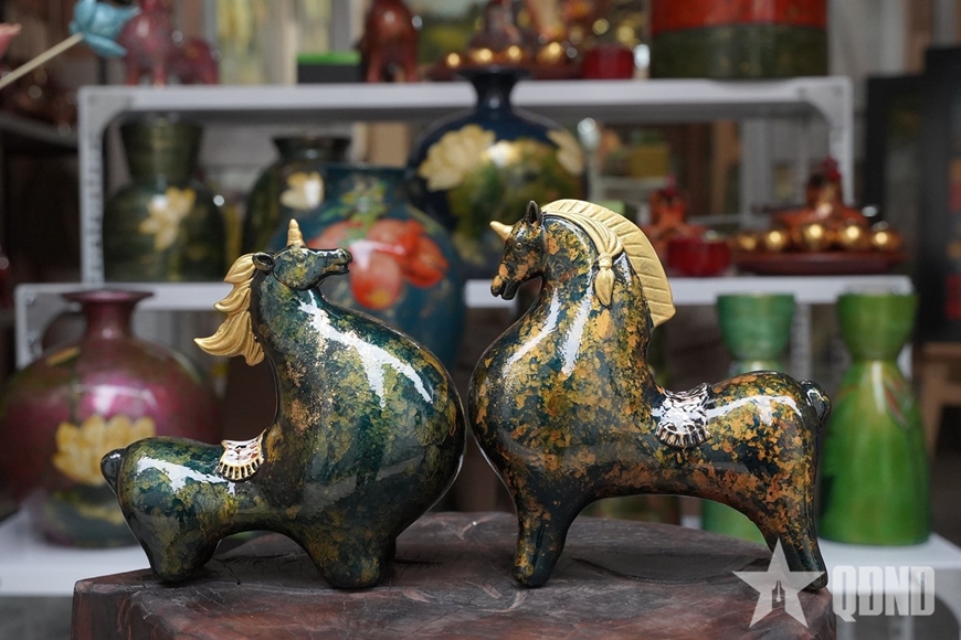 | Những chú ngựa sơn mài Hạ Thái mang vẻ đẹp độc đáo, được nhiều khách hàng ưa chuộng. |