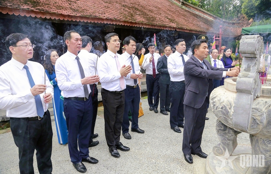 Các đại biểu Thường trực Tỉnh ủy dâng hương tại mộ Vua Lê Thái Tổ. |