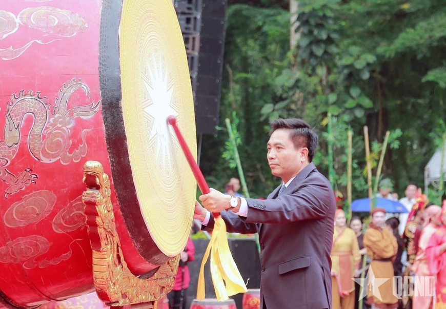 Đồng chí Nguyễn Doãn Anh, Ủy viên Trung ương Đảng, Bí thư Tỉnh ủy đánh trống khai hội. |