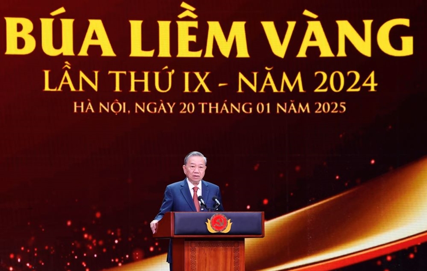 Phát biểu tại buổi lễ, thay mặt lãnh đạo Đảng, Nhà nước, Tổng Bí thư Tô Lâm ghi nhận, biểu dương và đánh giá cao những đóng góp xuất sắc của báo chí cả nước nói chung và báo chí viết về công tác xây dựng Đảng nói riêng, đồng thời nêu rõ: Giải Báo chí toàn quốc về xây dựng Đảng mang tên Búa liềm vàng ra đời và phát triển nhằm ghi nhận, tôn vinh vai trò, đóng góp to lớn của báo chí cách mạng. Qua 9 lần tổ chức, giải ngày càng khẳng định rõ uy tín, tầm vóc và thể hiện sự trưởng thành về nghiệp vụ, bản lĩnh chính trị của đội ngũ nhà báo chuyên và không chuyên viết về đề tài xây dựng Đảng. Những người làm báo đã thực sự nhập cuộc trách nhiệm, hòa mình vào công tác xây dựng, chỉnh đốn Đảng và hệ thống chính trị, phản ánh, phân tích hết sức đa dạng, phong phú mọi khía cạnh trên các mặt công tác xây dựng Đảng, ở tất cả loại hình tổ chức cơ sở đảng, khắp mọi miền đất nước.