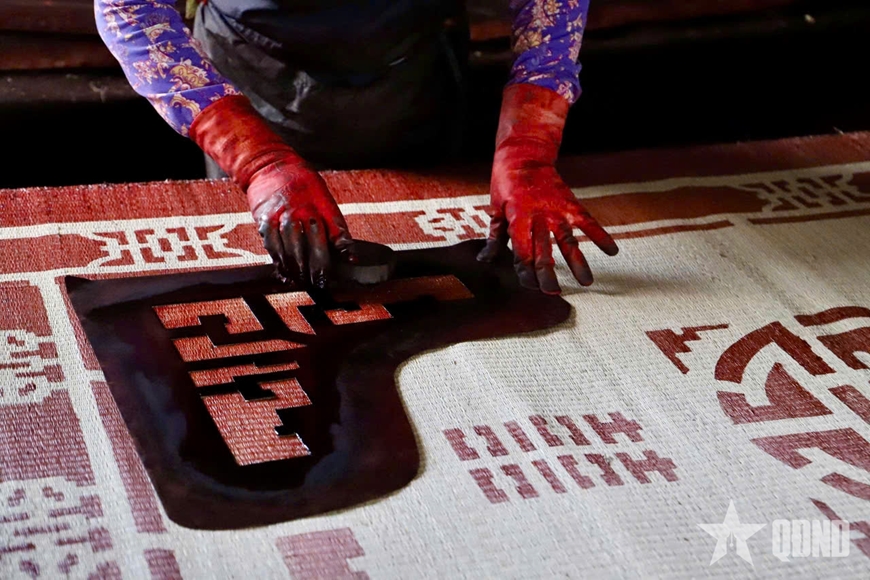 | Hoa văn truyền thống được in thủ công, tạo điểm nhấn thẩm mỹ cho chiếu cói. |