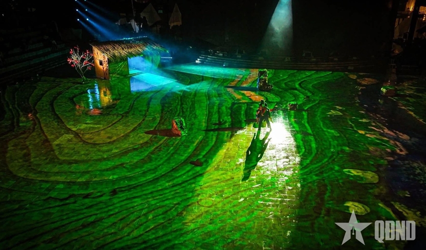 | Công nghệ và ánh sáng đưa khán giả bước vào không gian huyền ảo nêu bật những thửa ruộng bậc thang của vùng đất Sa Pa. |