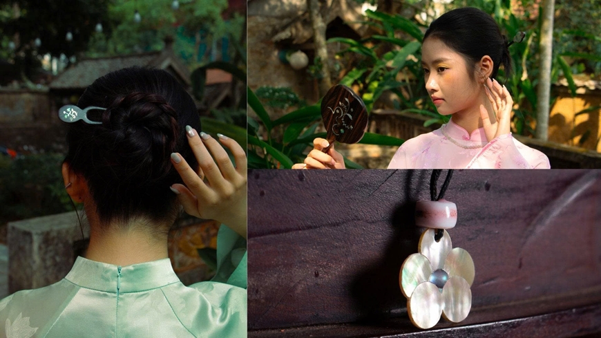 Trước thực tế ấy, việc các bạn trẻ chủ động sáng tạo, tìm thị trường mới cho làng nghề là tín hiệu đáng mừng. Bạn trẻ Minh Châu là một trường hợp như thế. Là người con của làng Chuôn Ngọ, Minh Châu đã mang theo tình yêu sản phẩm quê hương và khát vọng lan tỏa vẻ đẹp từ những sản phẩm khảm trai tới gần hơn với người trẻ. “Từ khi lên đại học, tôi nhận thấy sự mai một dần của khảm trai ngay từ chính làng của mình, nhất là từ sau dịch Covid-19, nhiều người trẻ trong làng cũng chuyển sang nghề khác ổn định và có nhiều cơ hội phát triển hơn, từ đó càng khiến nhân lực giữ nghề ngày một hiếm” - Minh Châu cho biết.