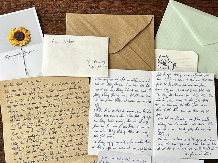 Phương Anh thường viết thư cho bạn bè, người thân vào những dịp đặc biệt, hoặc đơn giản là khi muốn tâm sự, động viên. Đôi khi, bạn cũng viết cho chính mình để lưu giữ cảm xúc và suy nghĩ qua từng giai đoạn. Với bạn, mỗi lá thư không chỉ là lời nhắn gửi mà còn thể hiện sự trân trọng dành cho người nhận.