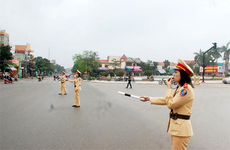 Sáng sớm 10-12, làm nhiệm vụ điều tiết giao thông tại ngã tư trước Trung tâm Văn hóa TP Đông Hà, tỉnh Quảng trị - điểm xuất phát của đoàn đua, Thượng úy Trần Thị Hồng Hiếu và Thượng úy Nguyễn Thị Phương Thanh, cán bộ Đội Cảnh sát giao thông Công an TP Đông Hà đã tạo sự chú ý cho những người tham gia giao thông khu vực này, bởi dáng vóc, nước da, bộ quân phục và nét mặt tươi tắn. Bởi thế, sau mỗi hiệu lệnh điều khiển giao thông, mọi người đều nghiêm chỉnh chấp hành theo hướng dẫn của các “bóng vàng”, giúp cho việc tổ chức lễ xuất phát của đoàn đua diễn ra đúng kế hoạch, thời gian, an toàn.