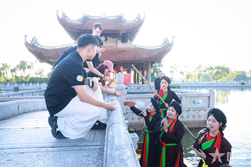 | Trong suốt hành trình, các thí sinh đã được thưởng thức nhiều loại hình văn hóa nghệ thuật truyền thống như: Dân ca quan họ, ca trù, hát chèo, hát xẩm... |