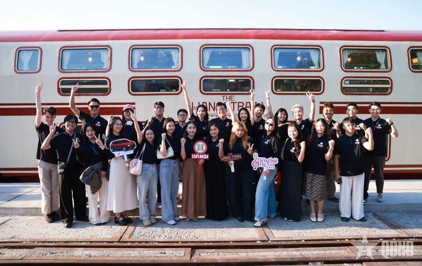 Các thí sinh của "Tiếng hát Hà Nội" năm 2025 trải nghiệm trên đoàn tàu du lịch văn hóa “Hà Nội 5 Cửa Ô - The Hanoi Train”, khởi hành từ ga Hà Nội, mở đầu cho hành trình qua các ga Long Biên, Gia Lâm và Yên Viên.