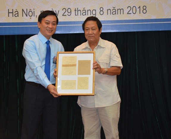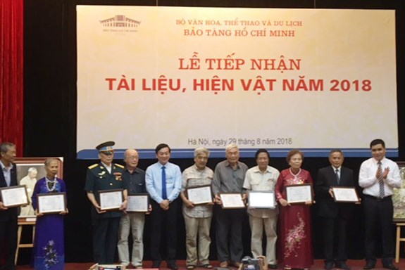 Bảo tàng Hồ Chí Minh trao tặng giấy chứng nhận cho các nhân chứng, cộng tác viên đến trao tặng hiện vật. |
