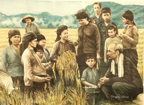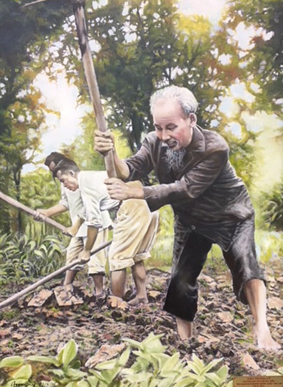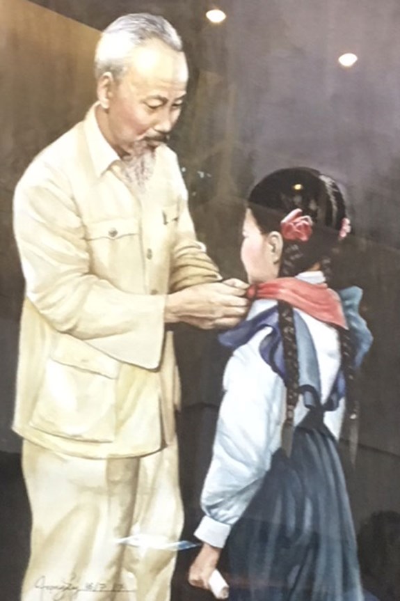 Các bức tranh Chủ tịch Hồ Chí Minh do ông Đào Trọng Lý (Việt kiều tại Thái Lan) trao tặng. |