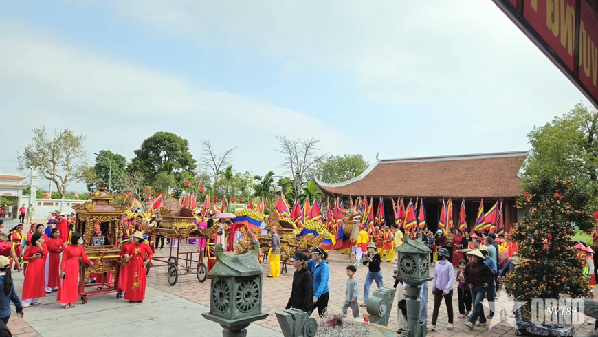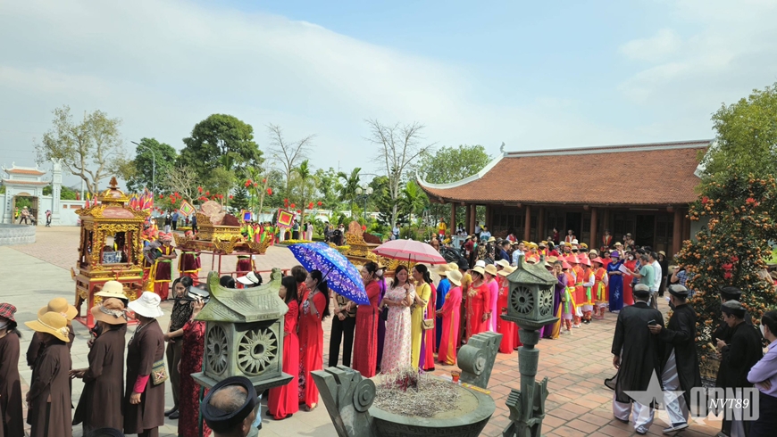 Quang cảnh buổi tổng duyệt chuẩn bị cho lễ hội đền thờ Triệu Việt Vương. Ảnh: VĂN TỈNH