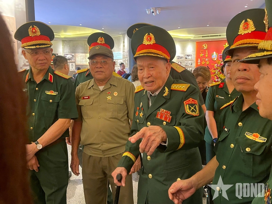 Đại tá, Anh hùng LLVT nhân dân Nguyễn Văn Tàu (bí danh Tư Cang) tham quan Nhà tưởng niệm. Ông nguyên là Cụm trưởng Cụm H63,