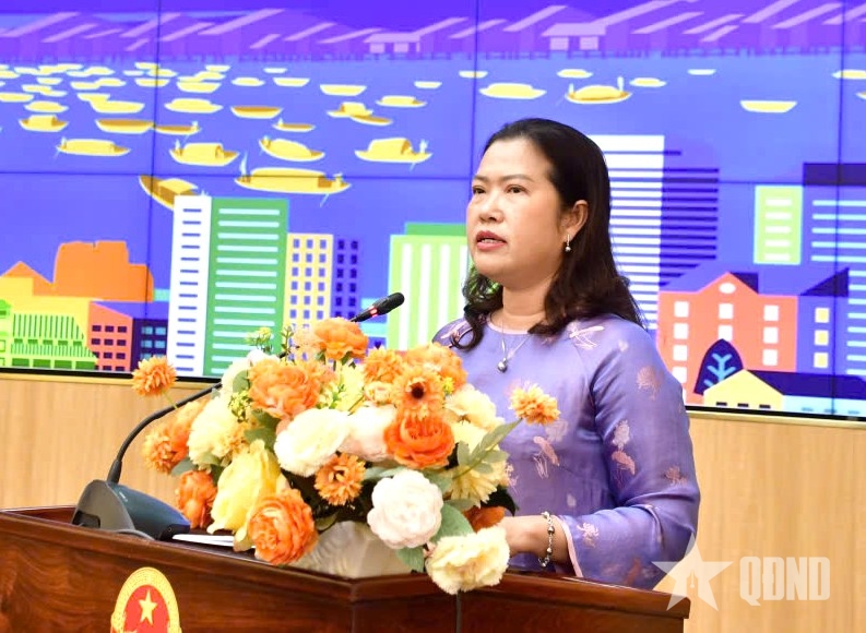 | Đồng chí Nguyễn Thị Ngọc Điệp, Phó chủ tịch UBND TP Cần Thơ phát biểu tại buổi họp báo. |