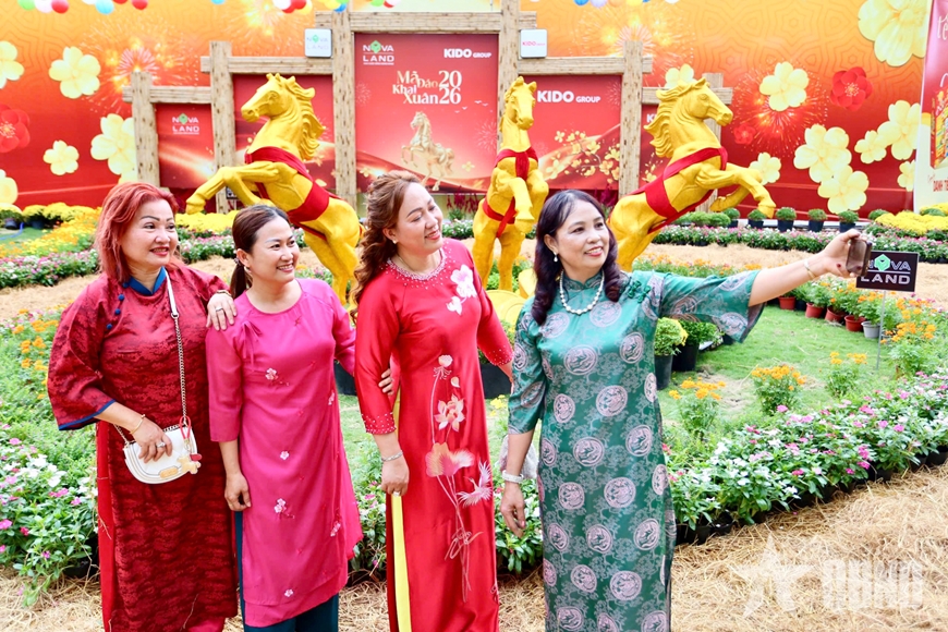 Từ các công viên, quảng trường đến những điểm vui chơi, không gian văn hóa của TP Hồ Chí Minh, hình ảnh áo dài hòa cùng sắc hoa và dòng người du xuân làm nổi bật vẻ đẹp truyền thống trong nhịp sống hiện đại.