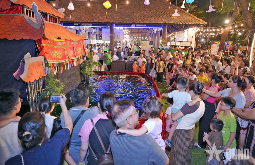| Khu vực sân khấu múa rối nước luôn đông đảo khách tham quan, thưởng thức. |