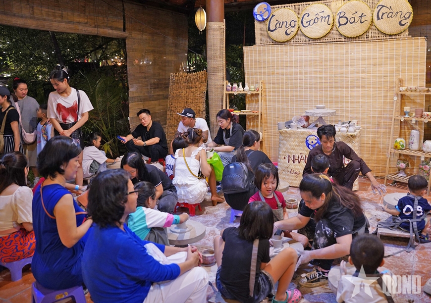 | Các gia đình thích thú trải nghiệm làng nghề gốm Bát Tràng. |
