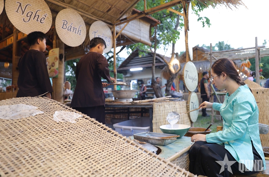 | Trình diễn nghề làm bánh tráng tại lễ hội. |