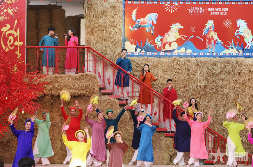 Lễ hội Tết Việt Bính Ngọ 2026 được tổ chức với nhiều hoạt động mừng Tết mang đậm bản sắc văn hóa dân tộc, nhằm lan tỏa các giá trị và tinh thần văn hóa truyền thống. Trong đó, điểm nhấn là không gian “Đẹp xưa” với phố ông đồ, đường hoa mai, cây nêu ngày tết, bếp xuân, luống hoa… thể hiện nét đẹp văn hóa Tết cổ truyền của dân tộc. Du khách tham quan lễ hội được làng nghề truyền thống về trồng mai vàng, làm gốm, làm hương…