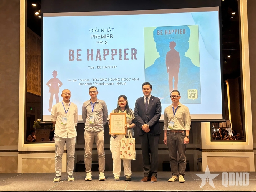 | Ban tổ chức trao giải nhất đến tác giả Trương Hoàng Ngọc Anh (bút danh Nhum) với tác phẩm “Be Happier”. |