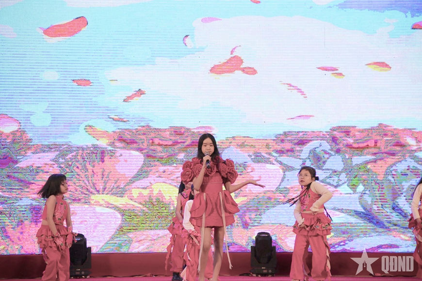 | Các tiết mục hát múa của các em nhỏ mang đến không khí mùa xuân trong trẻo, hồn nhiên, lan tỏa niềm vui và cảm xúc tích cực tới khán giả. |