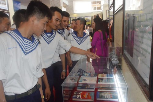 Cán bộ, chiến sĩ Lữ đoàn 962 (Quân khu 9) xem triển lãm “Hoàng Sa, Trường Sa của Việt Nam - Những bằng chứng lịch sử và pháp lý”.
