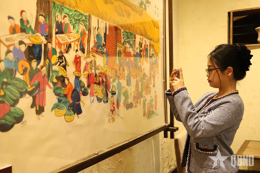 Cách bài trí tranh dân gian Hàng Trống trong không gian quán trà cho thấy một hướng tiếp cận khác đối với di sản. Khi hiện diện trong đời sống thường nhật, các tác phẩm không còn mang tính thưởng lãm nghi thức mà dần trở thành một phần của không gian sinh hoạt, giúp công chúng tiếp cận theo cách tự nhiên, gần gũi.