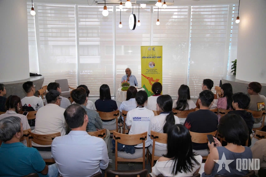 Tiến sĩ Hồ Quốc Hùng trò chuyện cùng các bạn trẻ về văn hóa dân tộc.