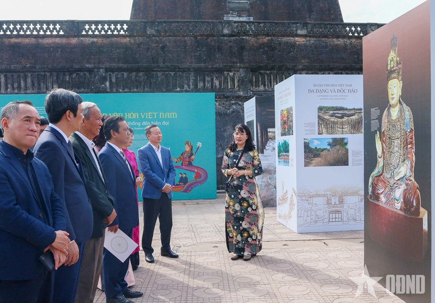 Phát biểu khai mạc trưng bày, đồng chí Hoàng Đạo Cương, Thứ trưởng Bộ Văn hóa, Thể thao và Du lịch nhấn mạnh: “Trong những năm qua, công tác bảo tồn và phát huy giá trị di sản văn hóa luôn được Đảng, Nhà nước đặc biệt quan tâm, chỉ đạo sát sao và được thể chế hóa ngày càng đầy đủ thông qua hệ thống pháp luật, chính sách và các chương trình hành động cụ thể về bảo vệ và phát huy giá trị di sản văn hóa Việt Nam. Hoạt động trưng bày lần này không chỉ tôn vinh các giá trị di sản mà còn lan tỏa nhận thức, trách nhiệm và niềm tự hào của toàn xã hội đối với sự nghiệp bảo tồn di sản văn hóa của nước nhà”.