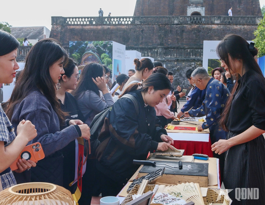 | Công chúng tham gia trải nghiệm làm tranh Đông Hồ. |